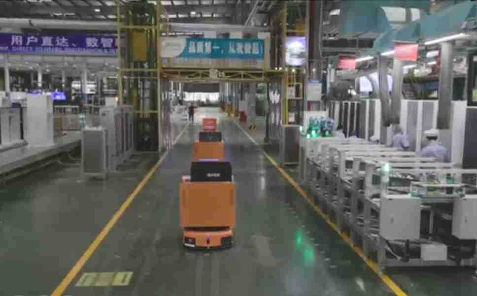 为车载冰箱物流配送打造的智能解决方案,,包含产中物流通过潜伏举升AMR搬运至线边,,产后成品物流智能仓储,,流程包含产中物流智能齐套入库,,,,线边安灯叫料AMR智能配送至线边,,,,成品入库、、、、出库,,,,通过无人堆高车机器人,,,,智能仓储管理替代人工作业管理,,实现更高存储、、、更高效率、、更具柔性化的解决方案。。。。
